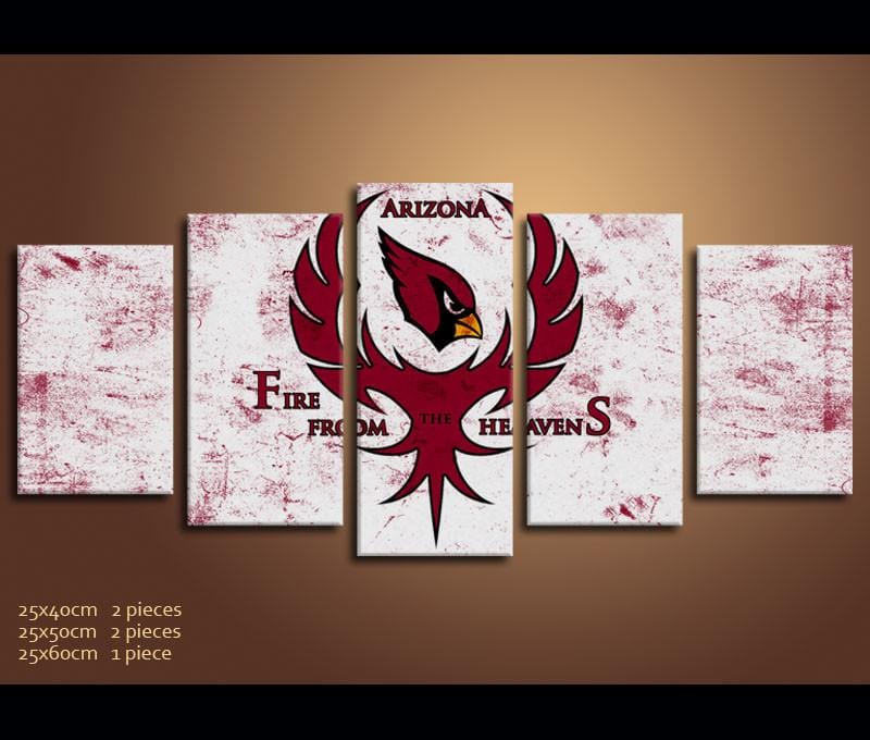 Arizona Cardinals Logo 2 – 5 Panel Canvas Prints Wall Art Home Decor Frame Set