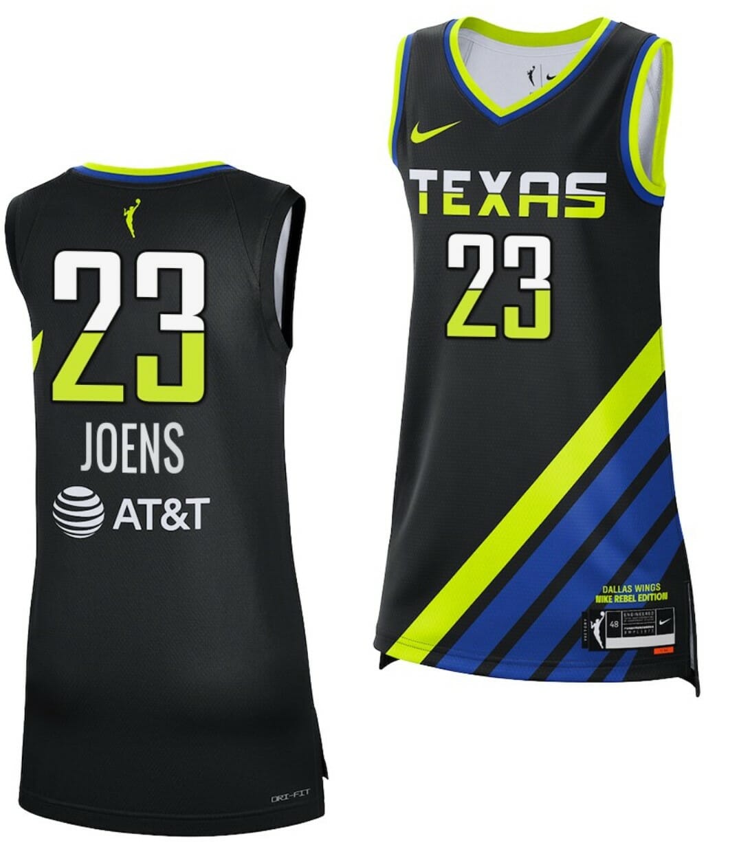 The Ashley Joens Rebel Edition Dallas Wings College Basketball 2023 WNBA Draft Black #23 jersey is not just a piece of clothing, but a symbol of support for a rising star in the world of women’s basketball. Fans of Ashley Joens and the Dallas Wings can show their fandom by wearing the jersey to games, practices, or just around town. The jersey is a great way to show support for the team and to celebrate the talent and hard work of Ashley Joens.