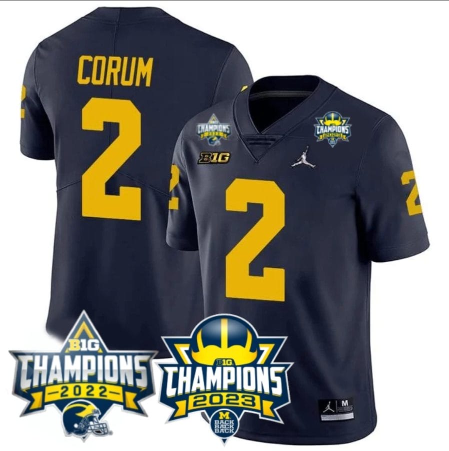 Blake Corum Jersey #2 Michigan Wolverines 2023 Big Ten Back to Back Champions Patch Stitched Navy