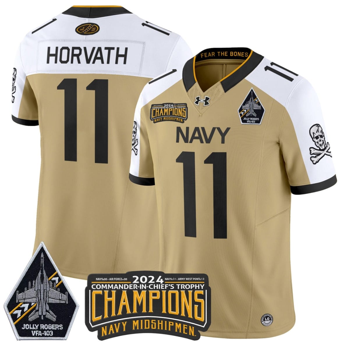 Custom Navy Midshipmen Jersey Name, Number 2024 Jolly Rogers Patch Gold Alternate