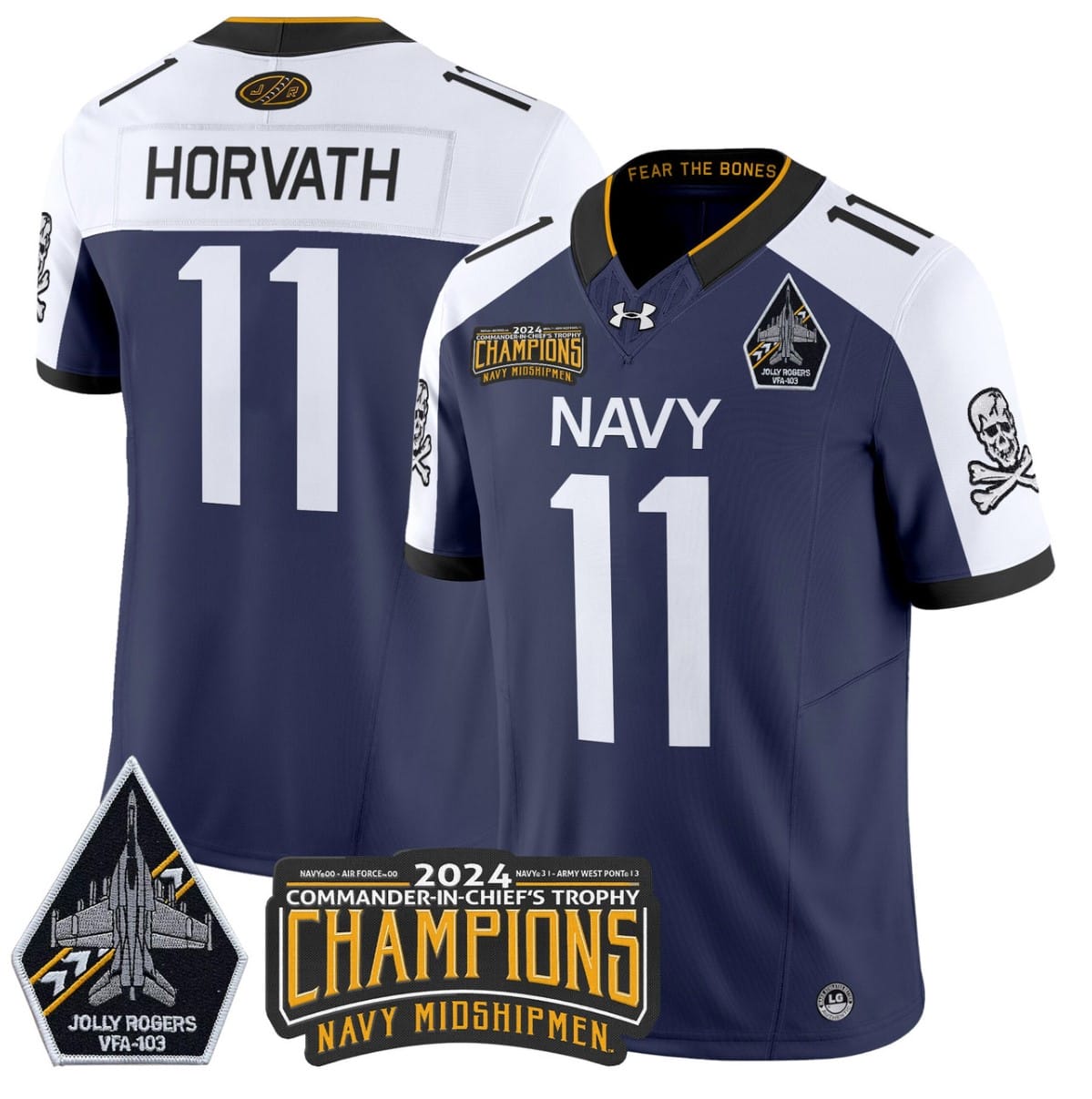 Custom Navy Midshipmen Jersey Name, Number 2024 Jolly Rogers Patch Navy Alternate