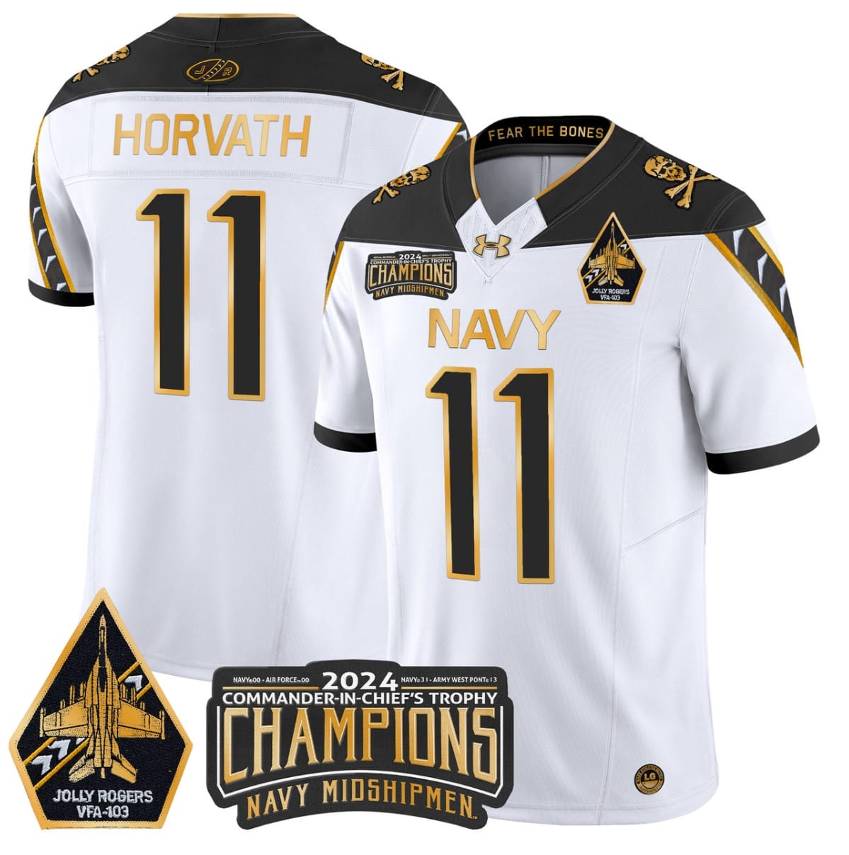 Custom Navy Midshipmen Jersey Name, Number 2024 Jolly Rogers Patch Gold