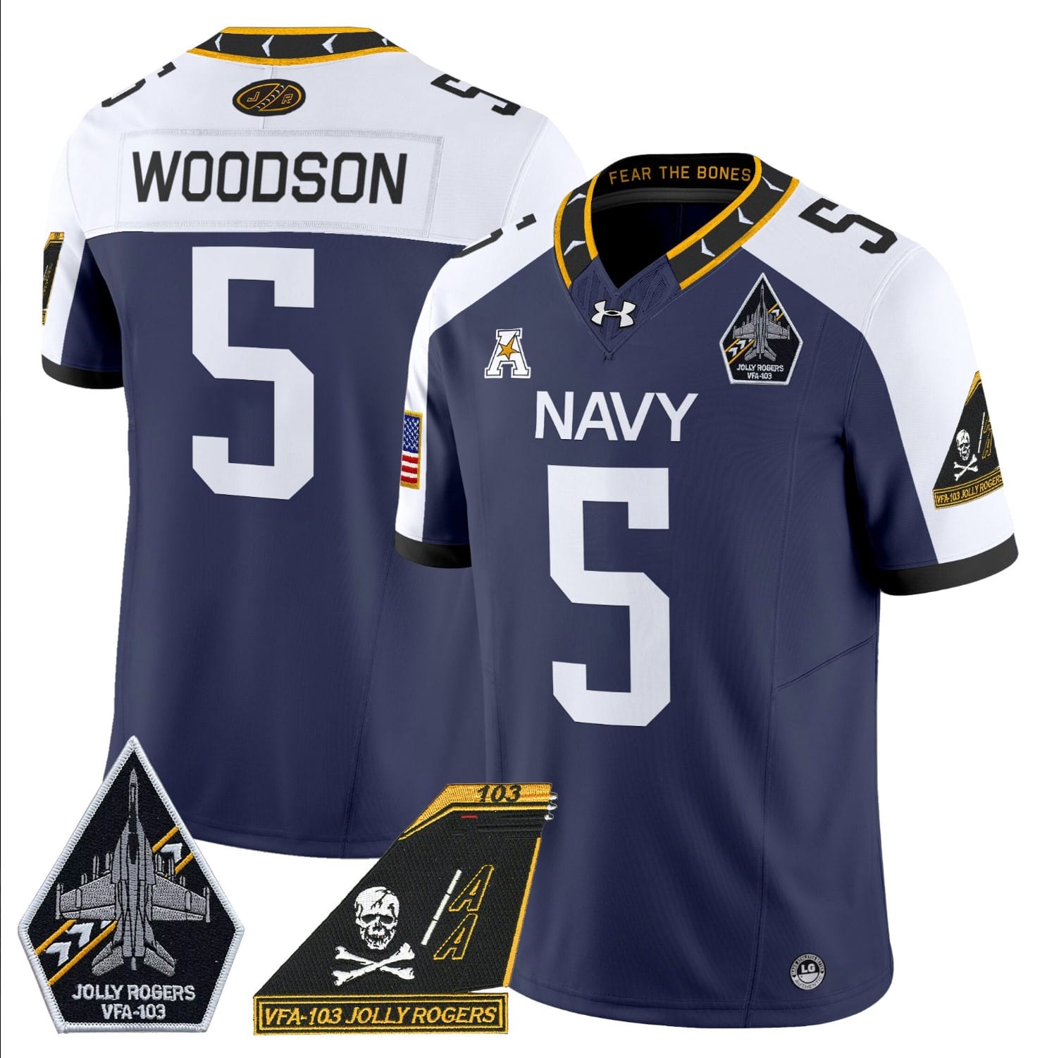 Introduction to Braxton Woodson Jersey #5 Navy Midshipmen 2024 Jolly Rogers Patch Navy Alternate and his career as a Navy Midshipman
