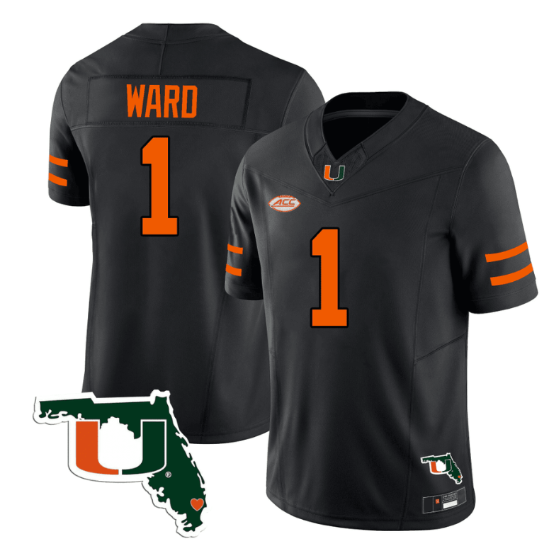 Custom Miami Hurricanes Jersey Name and Number Florida Map College Football Stitched Black