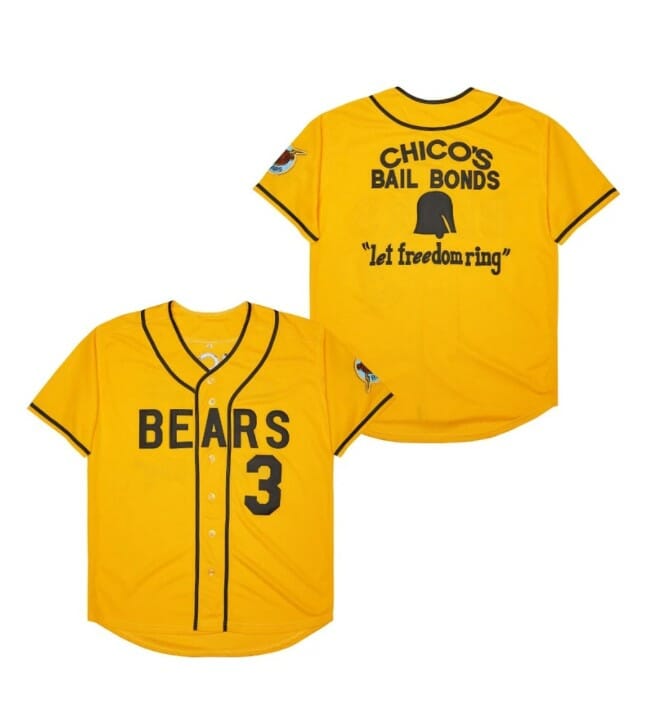Make sure you are ready to celebrate another baseball team victory on game day! This Chico Bail Bonds Bad News Bears Baseball Jersey Yellow is available in various size and gender men, women, and youth baseball jersey size and is a perfect way to let you join in on the fun. It boasts quality team colors and graphics so you can feel just like a true baseball team and show off your fandom!