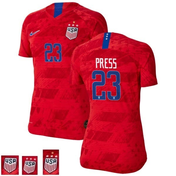 You’ll score points with every USWNT fan in this Christen Press Navy Red Champions no.23 USWNT Soccer Jersey. It keep you cool as the action on the field intensifies. The player letters and numbers on this jersey will make you feel just like one of the USWNT players.
