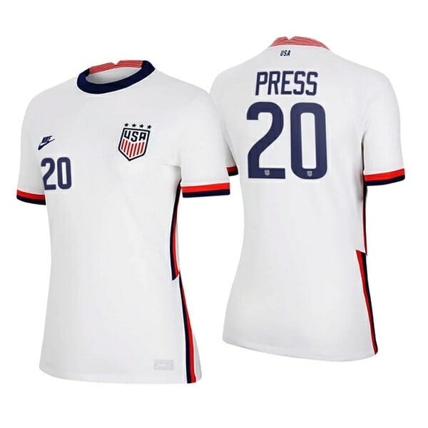 You’ll score points with every USWNT fan in this Christen Press White no.20 USWNT 2020-21 Home Soccer Four Stars Jersey. It keep you cool as the action on the field intensifies. The player letters and numbers on this jersey will make you feel just like one of the USWNT players.