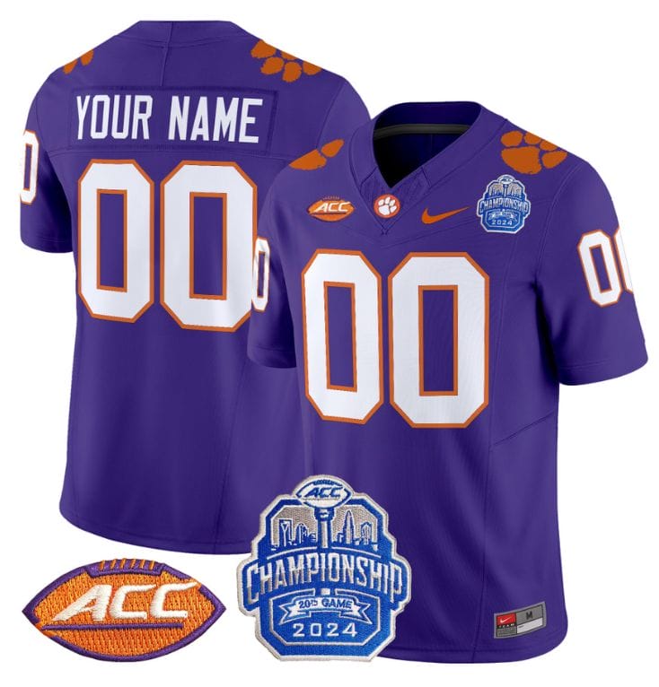 Custom Clemson Tigers Jersey 2024 ACC Championship Patch Stitched Football
