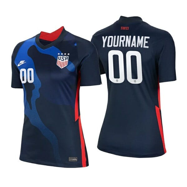 You’ll score points with every USWNT fan in this Customize Name and Number Away Navy 2020-21 USWNT Soccer Four Stars Jersey. It keep you cool as the action on the field intensifies. The player letters and numbers on this jersey will make you feel just like one of the USWNT players.