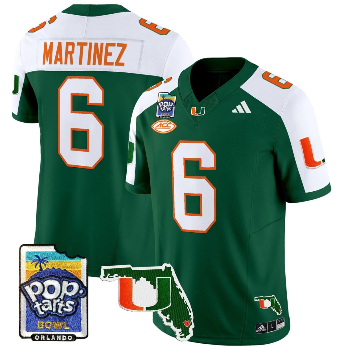 Damien Martinez Jersey #6 Miami Hurricanes 2025 PopTarts Bowl Patch Football All Stitched