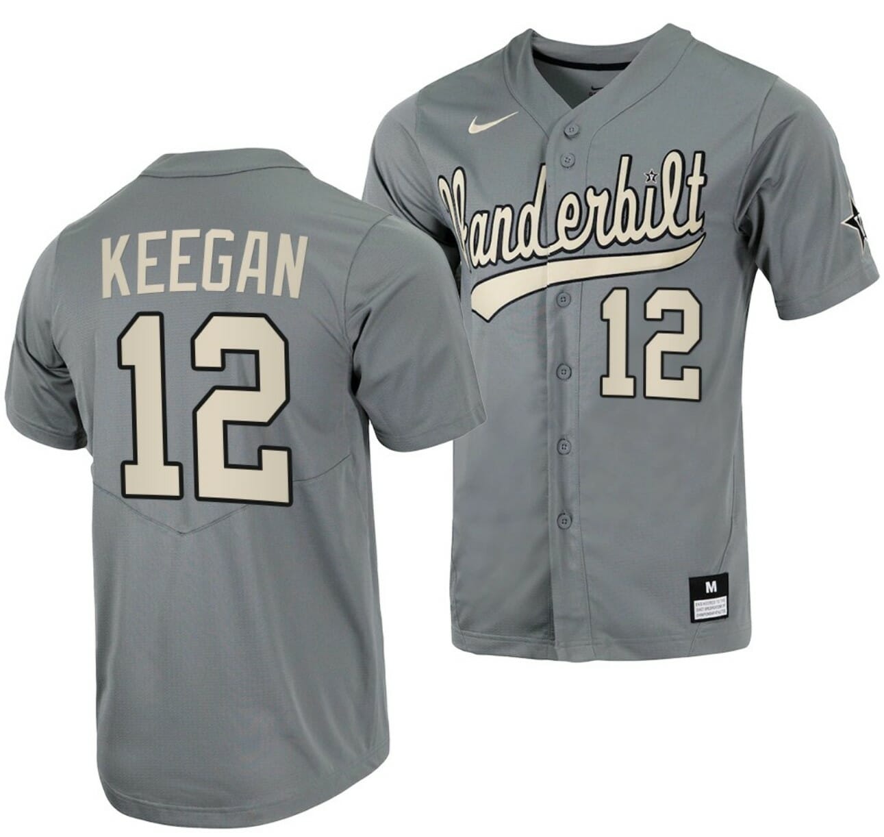Dominic Keegan Jersey Vanderbilt Commodores College Baseball Full-Button Grey #12