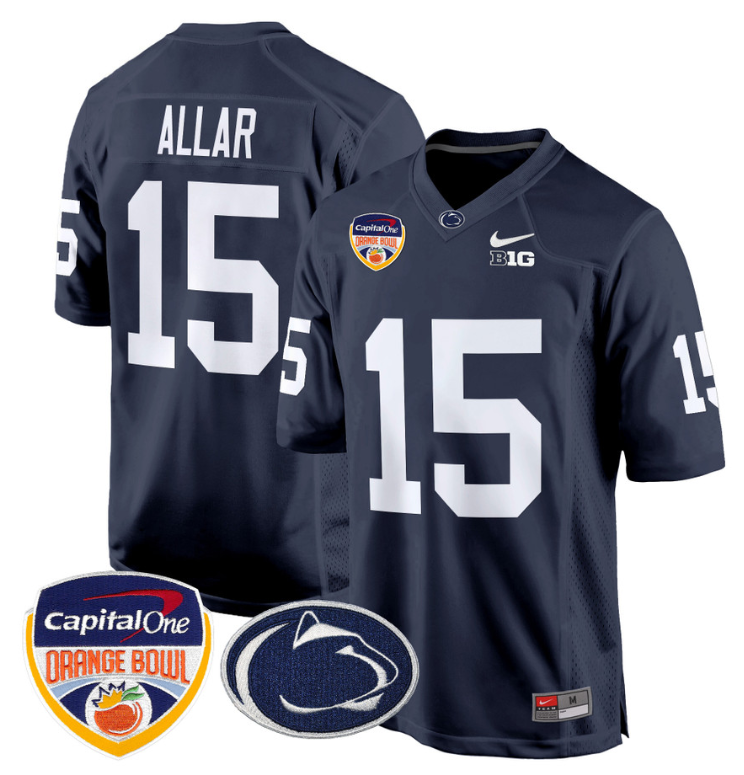 Drew Allar Jersey #15 Custom Penn State Orange Bowl Patch Vapor Stitched Football