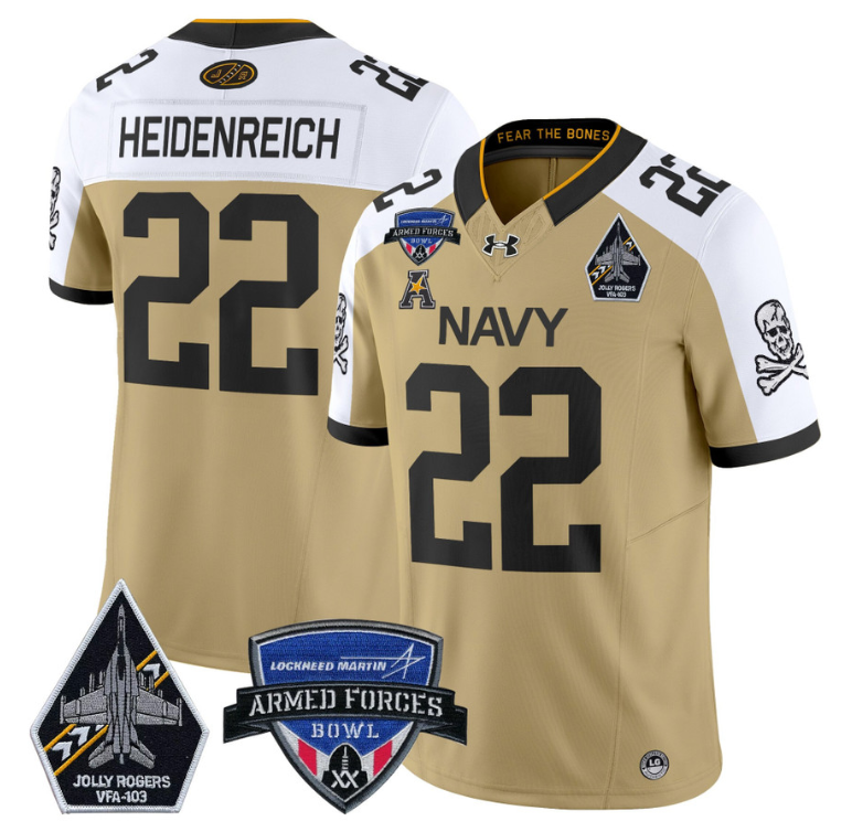 Eli Heidenreich Jersey #22 Navy Midshipmen 2025 Armed Forces Bowl All Stitched Football