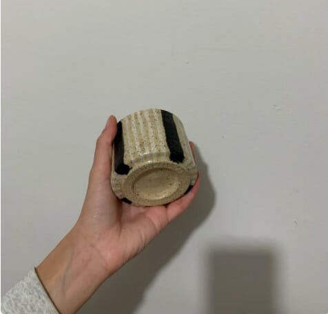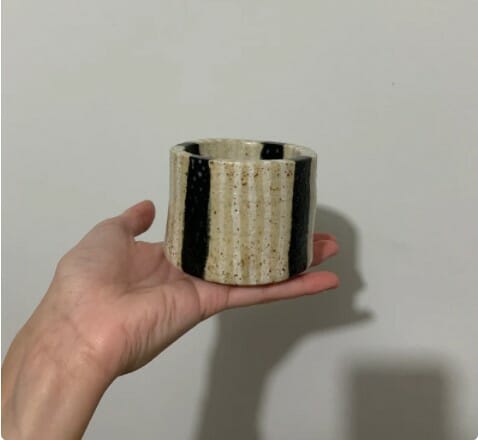 Handmade Striped Black And White Speckled Mug