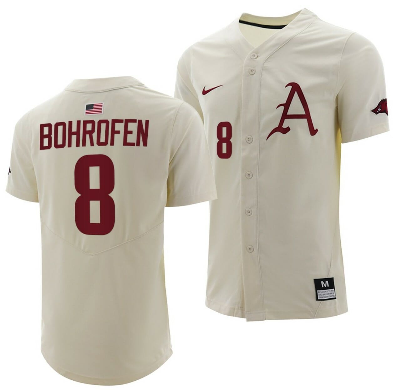 If you’re looking for a Jace Bohrofen jersey, then look no further. The Arkansas Razorbacks jersey is the perfect way to show off your fandom. This particular jersey features the number 8, which is Jace Bohrofen’s number. It is also in the natural color, giving it a classic look that will never go out of style.