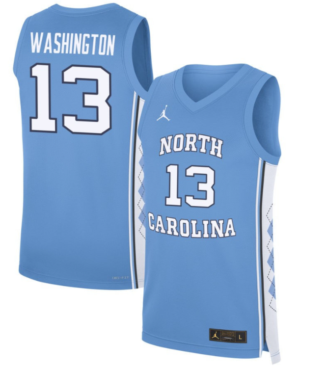 Jalen Washington Jersey #13 North Carolina Tar Heels Basketball Blue
