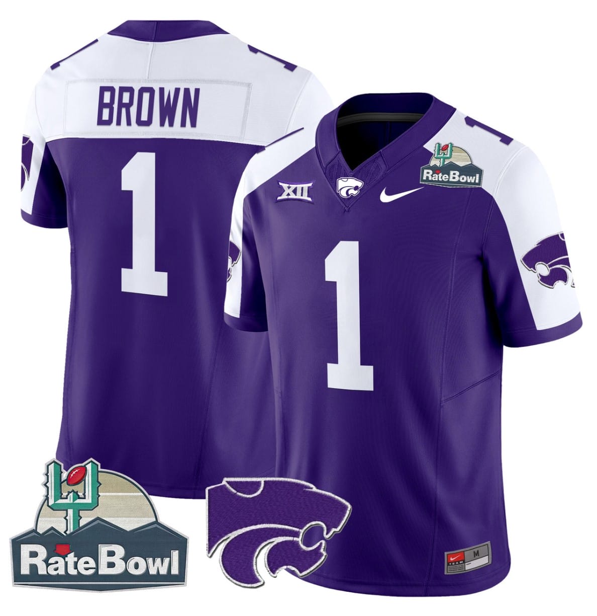 Jayce Brown Jersey #1 Kansas State Wildcats 2025 Rate Bowl Patch Football All Stitched