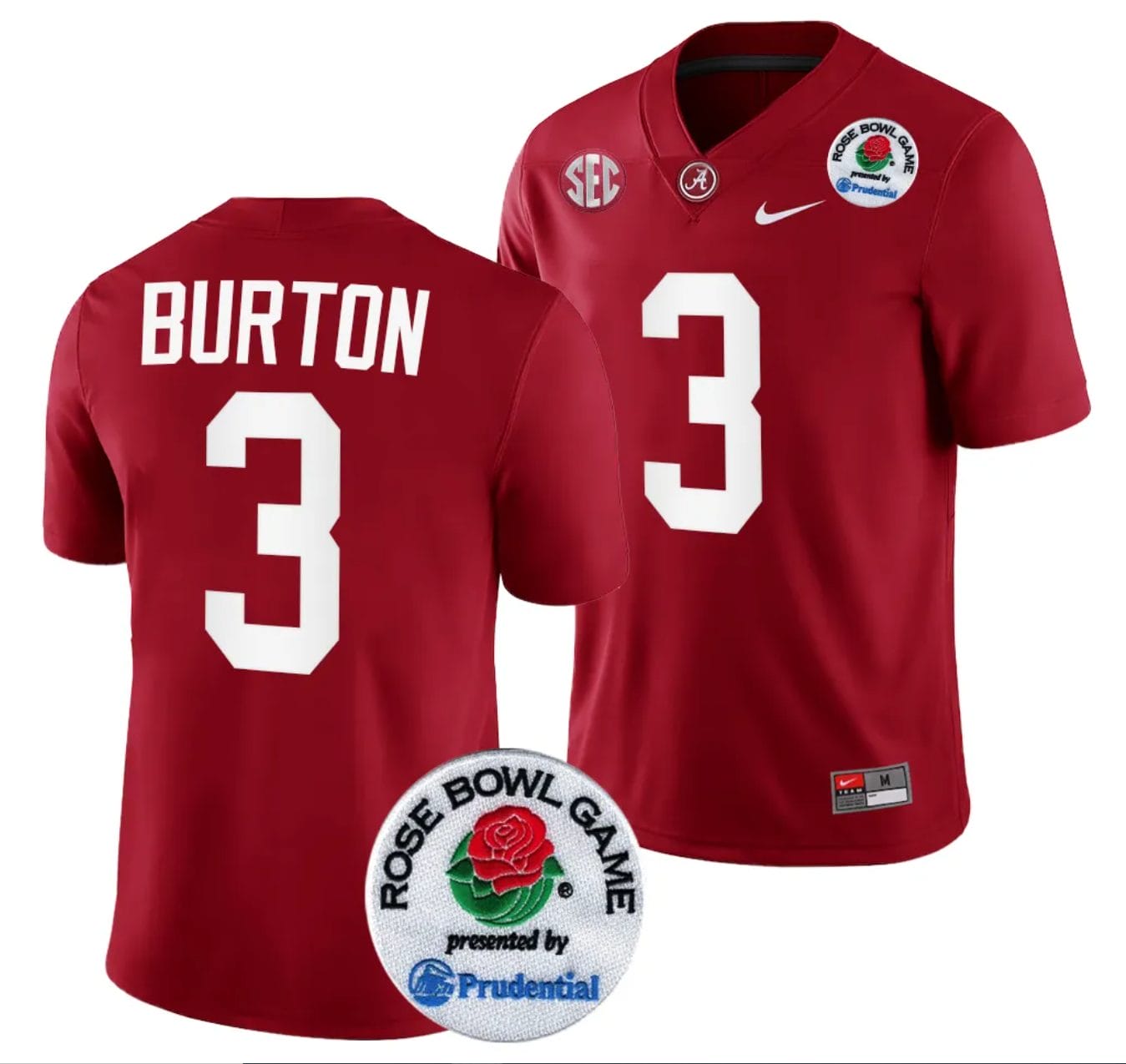 Jermaine Burton Jersey #3 Alabama Crimson Tide Rose Bowl Game 2024 Patch College Football Playoff Crimson