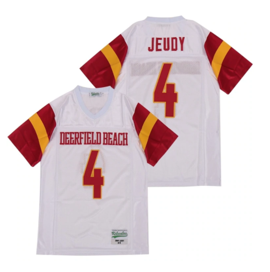 Celebrate your football fandom with this NCAA College Football jersey ! This Jerry Jeudy #4 Deerfield Beach High School Football Jersey is available in various size men, women and youth and features a combination of stitched-embroidery. You’ll look just like your favorite football players when you rock this NCAA College Football!