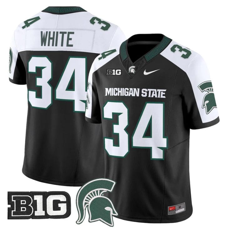 Lorenzo White Jersey #34 Michigan State Spartans 2025 Vapor Stitched Black Alter
