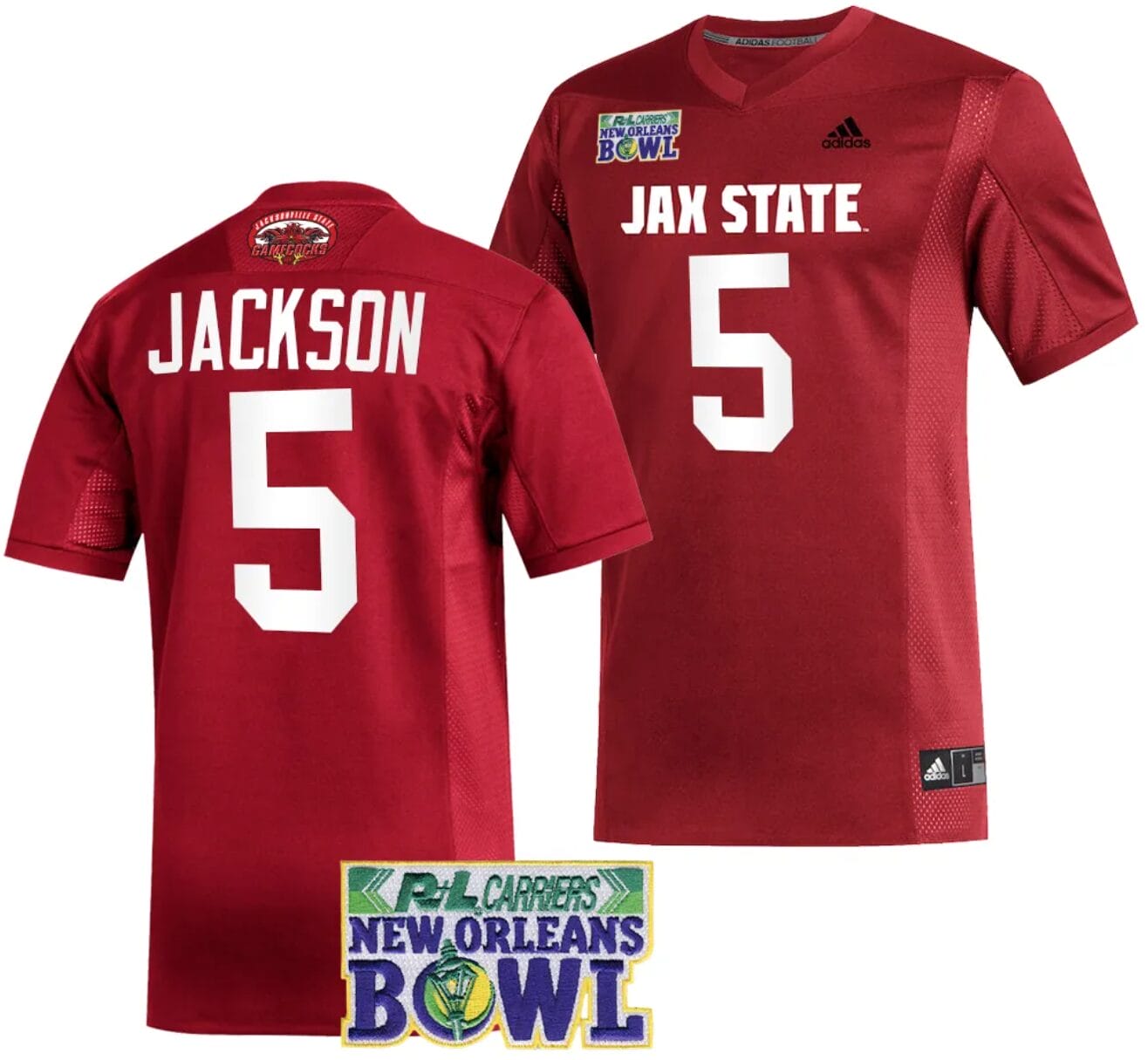 Malik Jackson Jersey #5 Jacksonville State Gamecocks 2023 New Orleans Bowl Patch Football Red