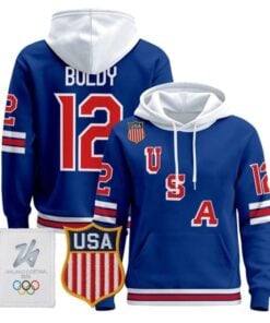 Matt Boldy #12 USA Olympic 2026 Premium Hockey Pullover Hoodie Stitched