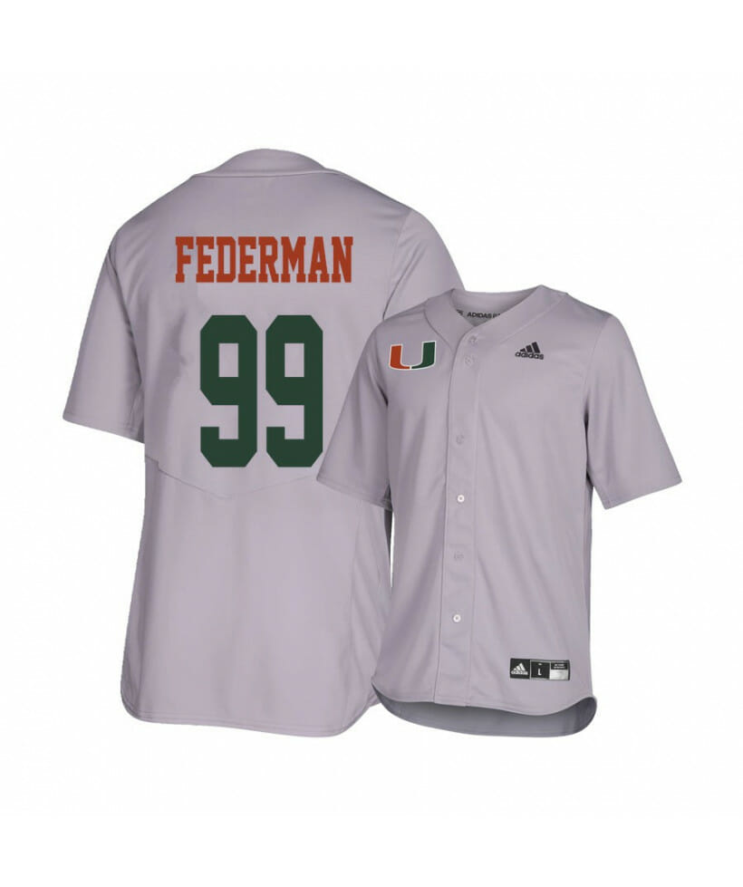 Celebrate your baseball fandom with this ncaa baseball jersey ! This Miami Hurricanes 99 Daniel Federman Gray College Baseball Jersey is available in various size men, women and youth and features a combination of stitched-embroidery. You’ll look just like your favorite ncaa football players when you rock this ncaa football jersey!