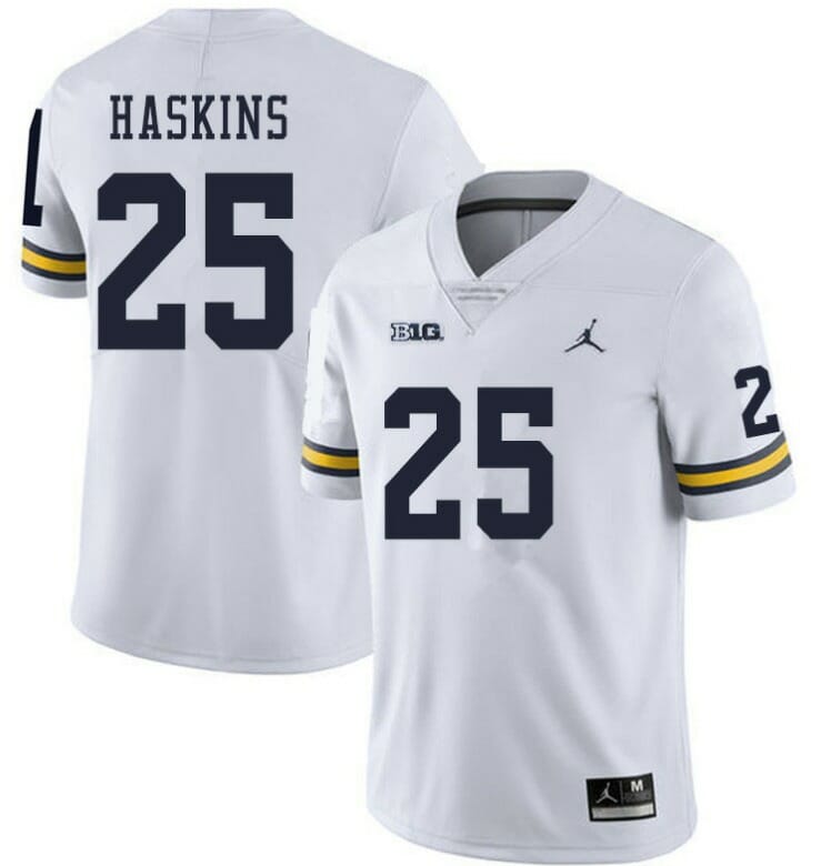 Michigan Wolverines #25 Hassan Haskins White College Football Jersey