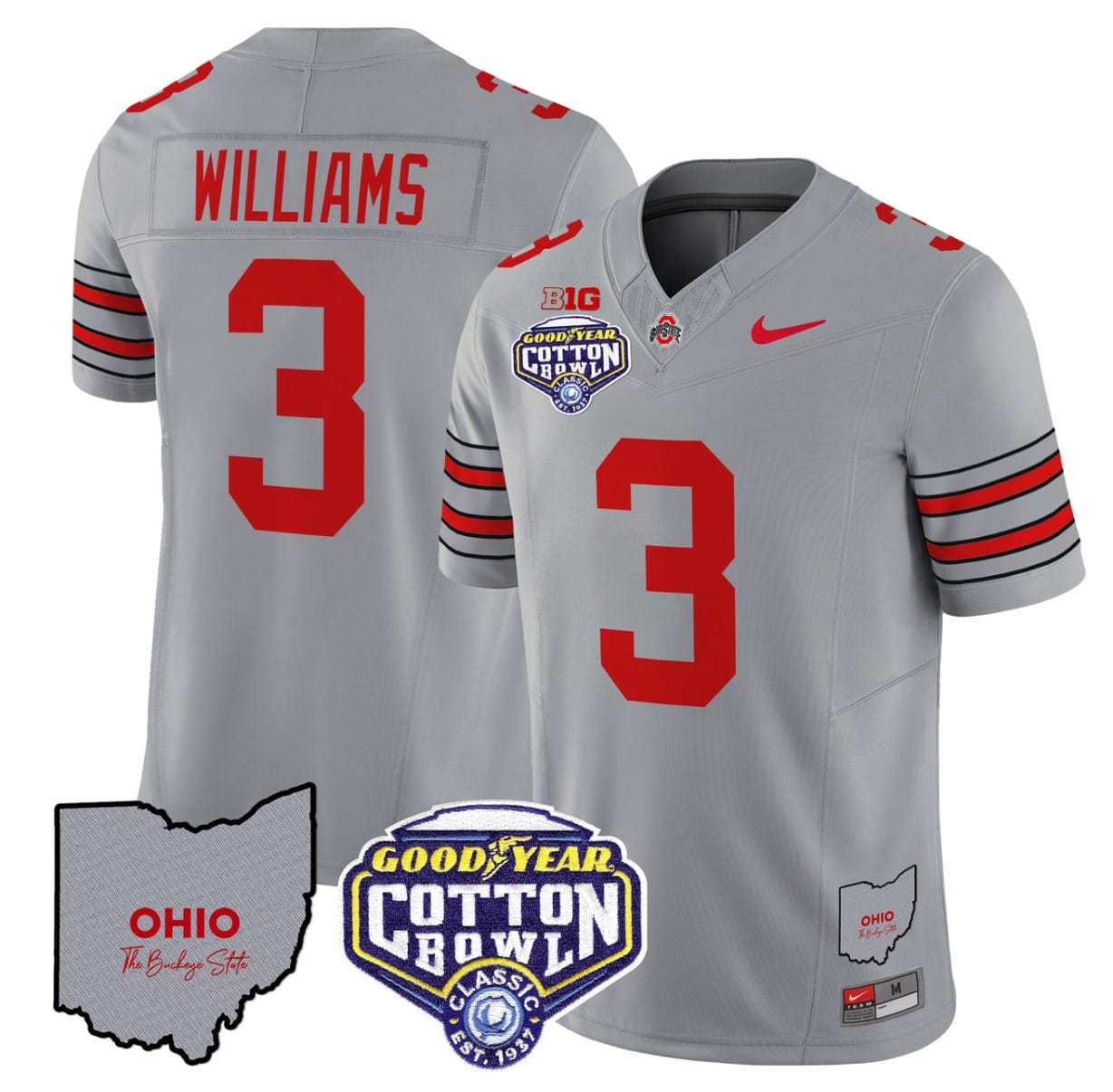 Custom Ohio State Buckeyes Jersey Name and Number Mascot Patch College Football Gray