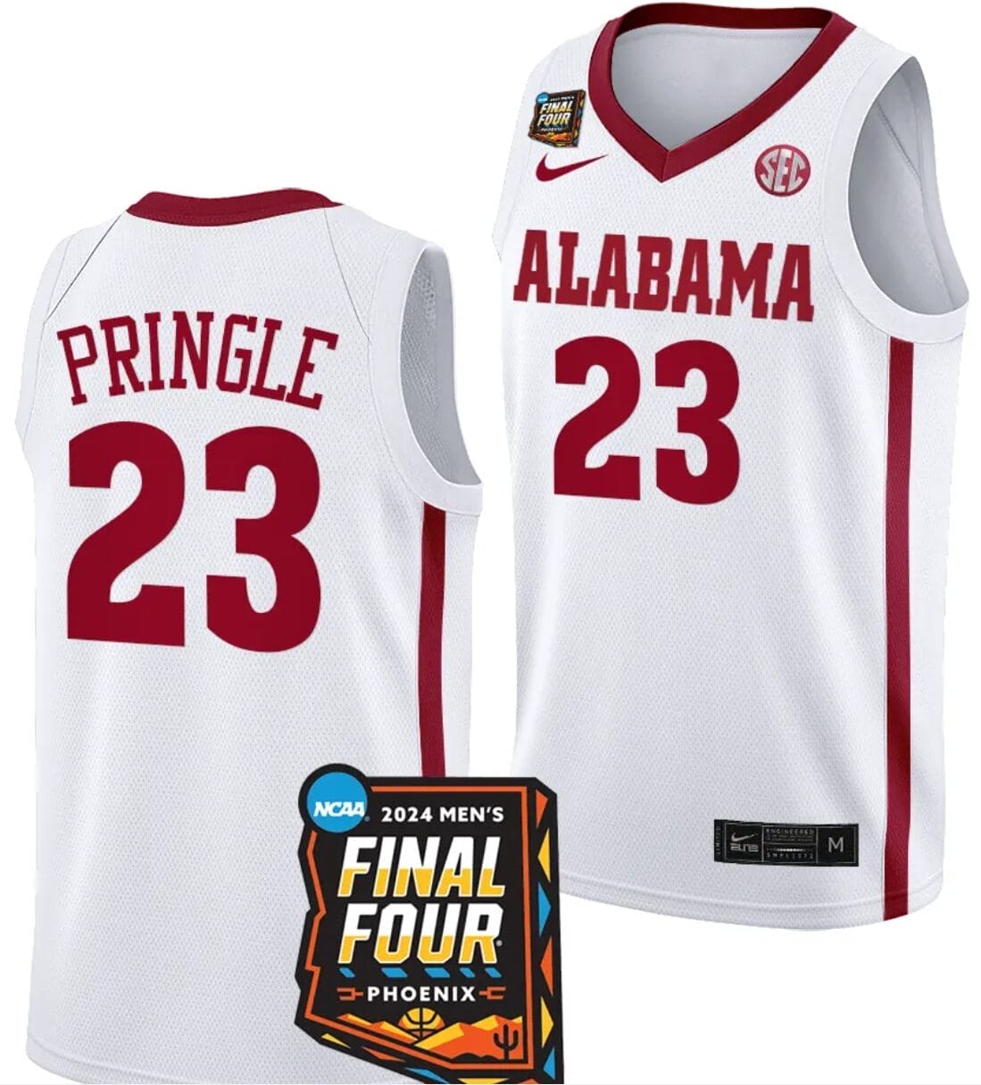 Nick Pringle Jersey #23 Alabama Crimson Tide 2024 NCAA March Madness Final Four Basketball White