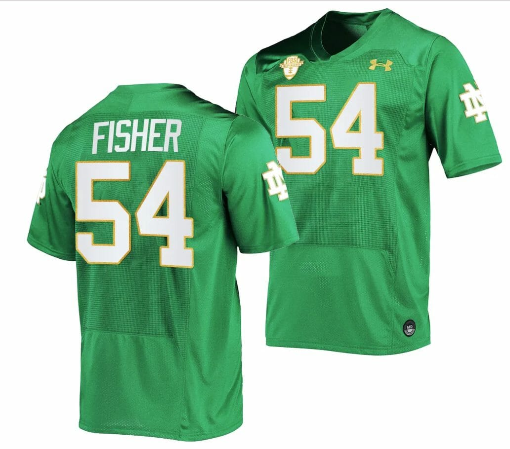 Notre Dame Fighting Irish #54 Blake Fisher Jersey College Football Green 2023