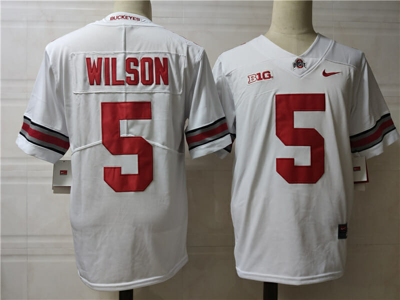 Celebrate your football fandom with this ncaa football jersey ! This Ohio State Buckeyes #5 Wilson College Football Jersey White is available in various size men, women and youth and features a combination of stitched-embroidery. You’ll look just like your favorite ncaa football players when you rock this ncaa football jersey!