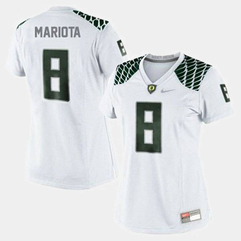 Celebrate your football fandom with this ncaa football jersey ! This Oregon Ducks #8 Marcus Mariota College Football White Jersey is available in various size men, women and youth and features a combination of stitched-embroidery. You’ll look just like your favorite ncaa football players when you rock this ncaa football jersey!
