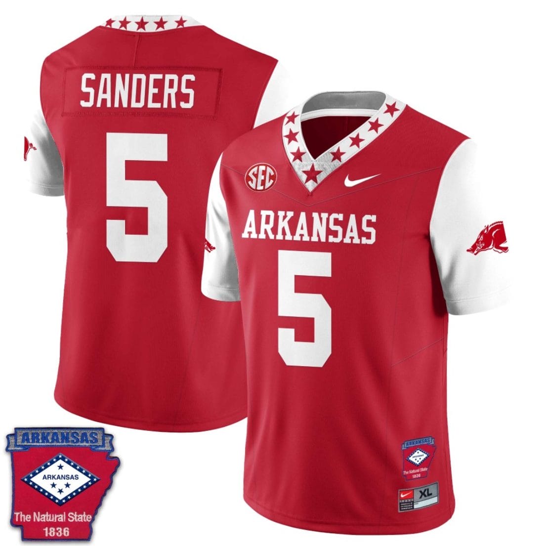 Raheim Sanders Jersey #5 Arkansas Razorback Football Arkansas Patch White Sleeves