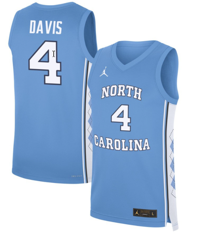 RJ Davis Jersey #4 North Carolina Tar Heels Basketball Blue