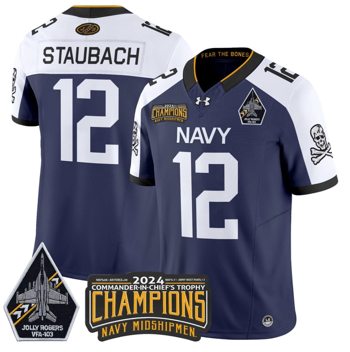 Custom Navy Midshipmen Jersey Name, Number 2024 Jolly Rogers Patch White
