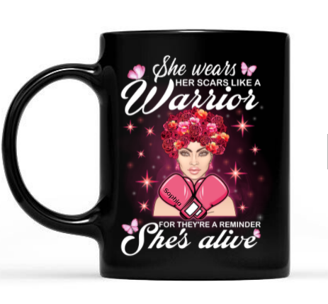 She Wears Her Scars Like A Warrior Breast Cancer Awareness Mug