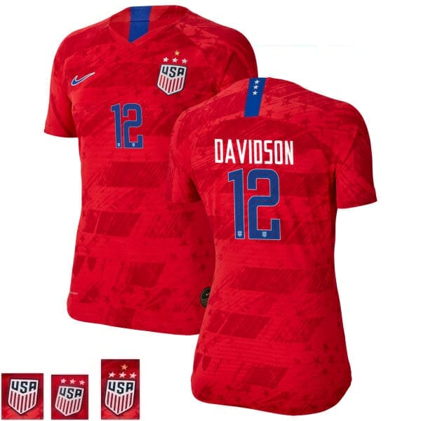 You’ll score points with every USWNT fan in this Tierna Davidson Red Away Champions no.12 USWNT Soccer Jersey. It keep you cool as the action on the field intensifies. The player letters and numbers on this jersey will make you feel just like one of the USWNT players.