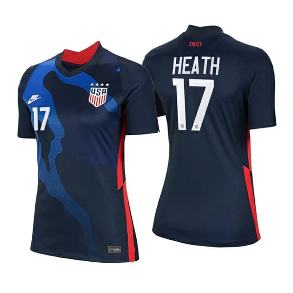 You’ll score points with every USWNT fan in this Tobin Heath Navy Away no.17 2020-21 USWNT Soccer Four Stars Jersey. It keep you cool as the action on the field intensifies. The player letters and numbers on this jersey will make you feel just like one of the USWNT players.