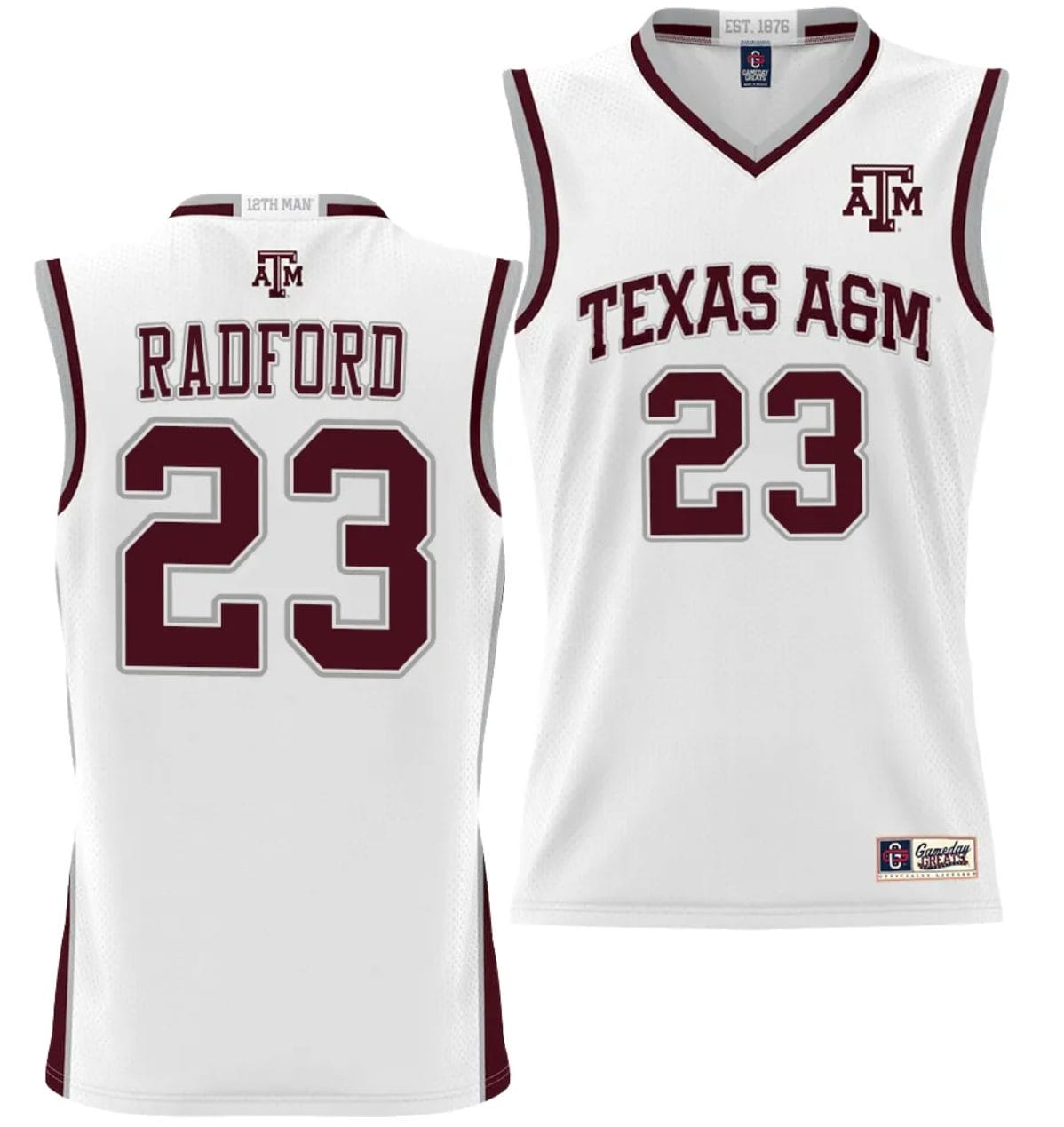 Tyrece Radford Jersey #23 Texas Aggies NIL College Basketball Jersey Lightweight White