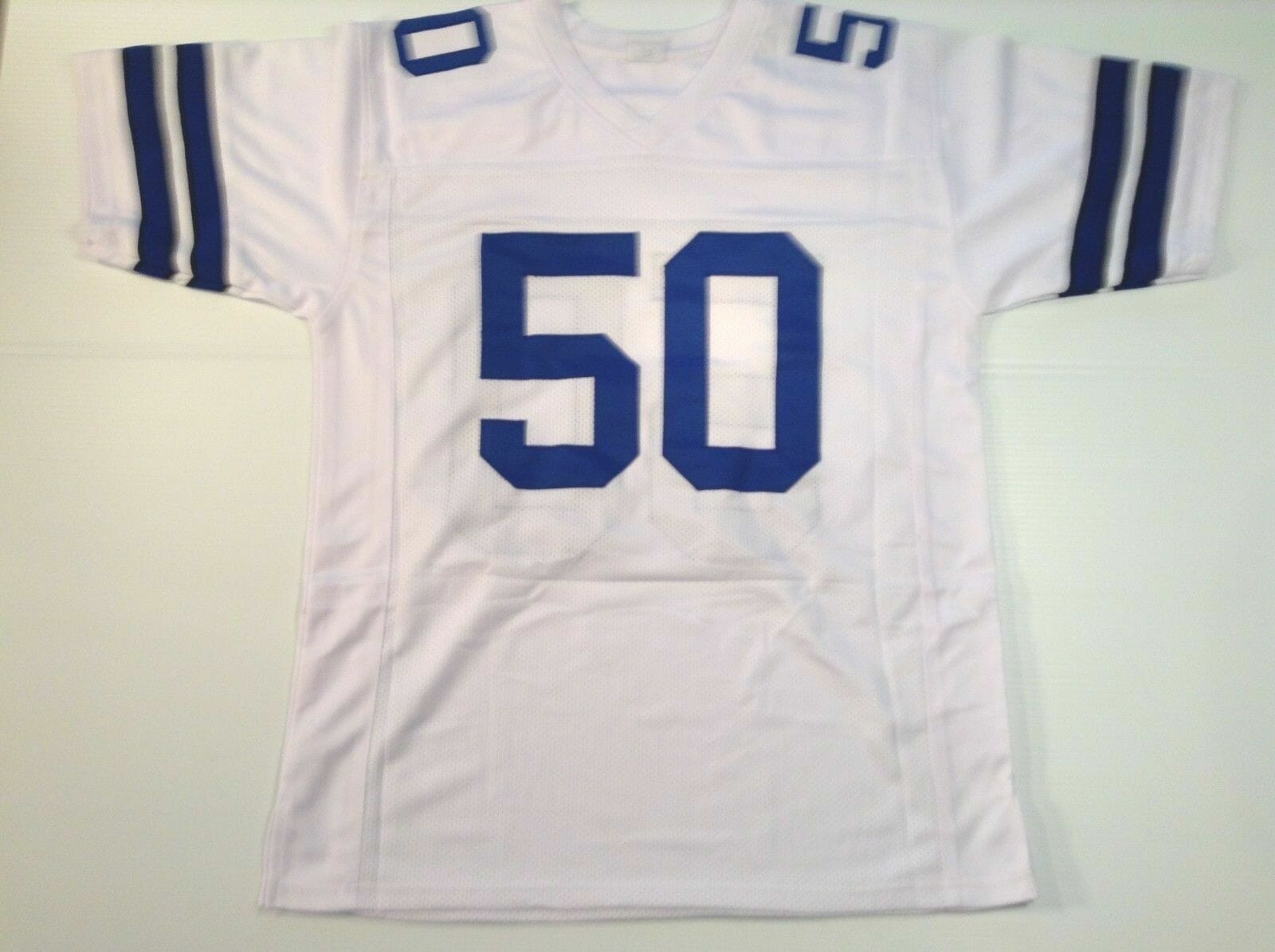 Make sure you are ready to celebrate another football team victory on game day! This UNSIGNED CUSTOM Sewn Stitched Sean Lee White Jersey is available in various size and gender men football jersey size and is a perfect way to let you join in on the fun. It boasts quality team colors and graphics so you can feel just like a true football team and show off your fandom!