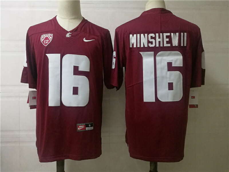 Celebrate your football fandom with this ncaa football jersey ! This Washington State Cougars #16 Minshew II College Football Jersey Red is available in various size men, women and youth and features a combination of stitched-embroidery. You’ll look just like your favorite ncaa football players when you rock this ncaa football jersey!