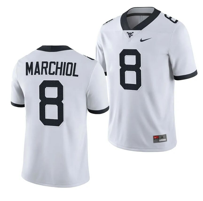 West Virginia Mountaineers Nicco Marchiol Jersey #8 College Football 2023 Game White